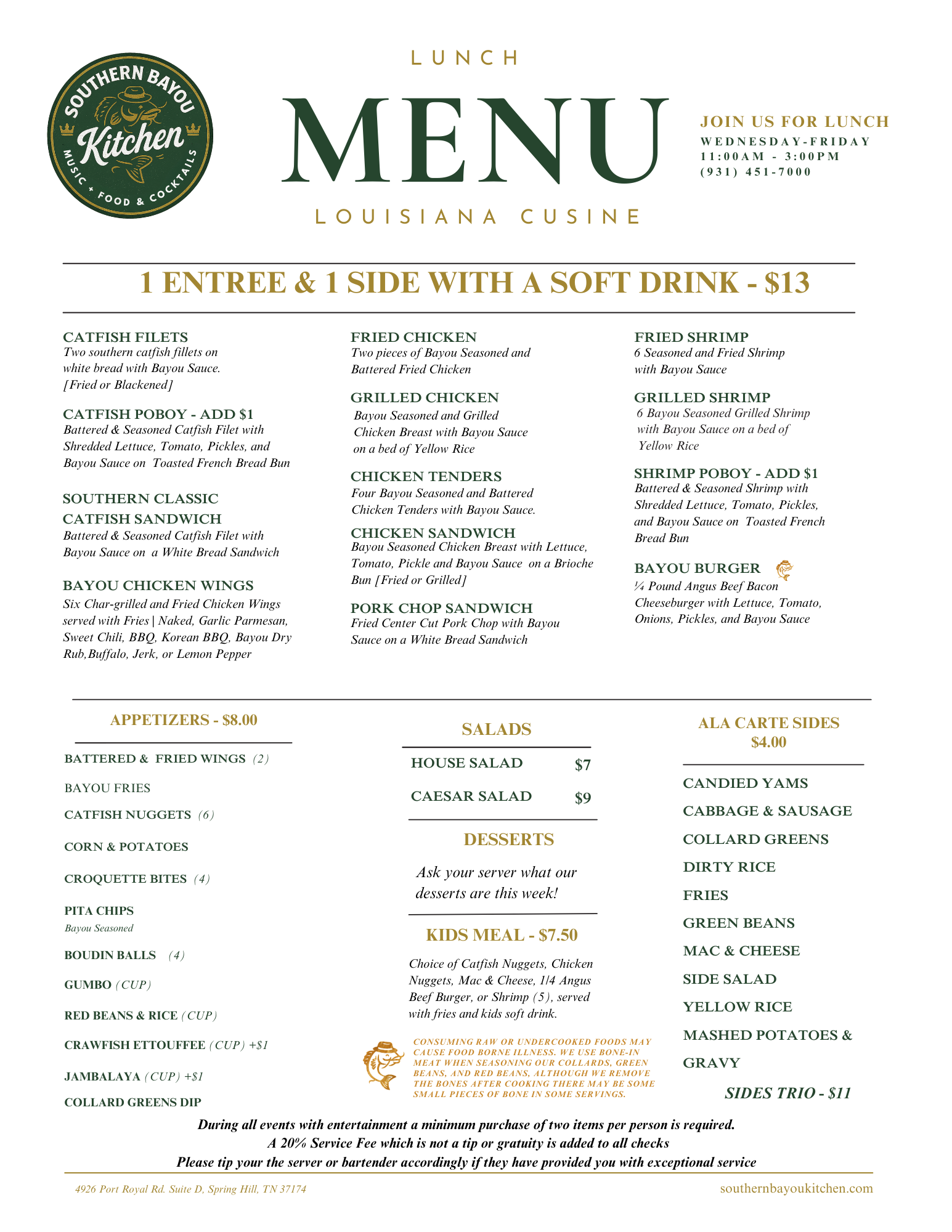 © 2025 Southern Bayou Kitchen. All rights reserved. Website designed by Couch Creative Co.