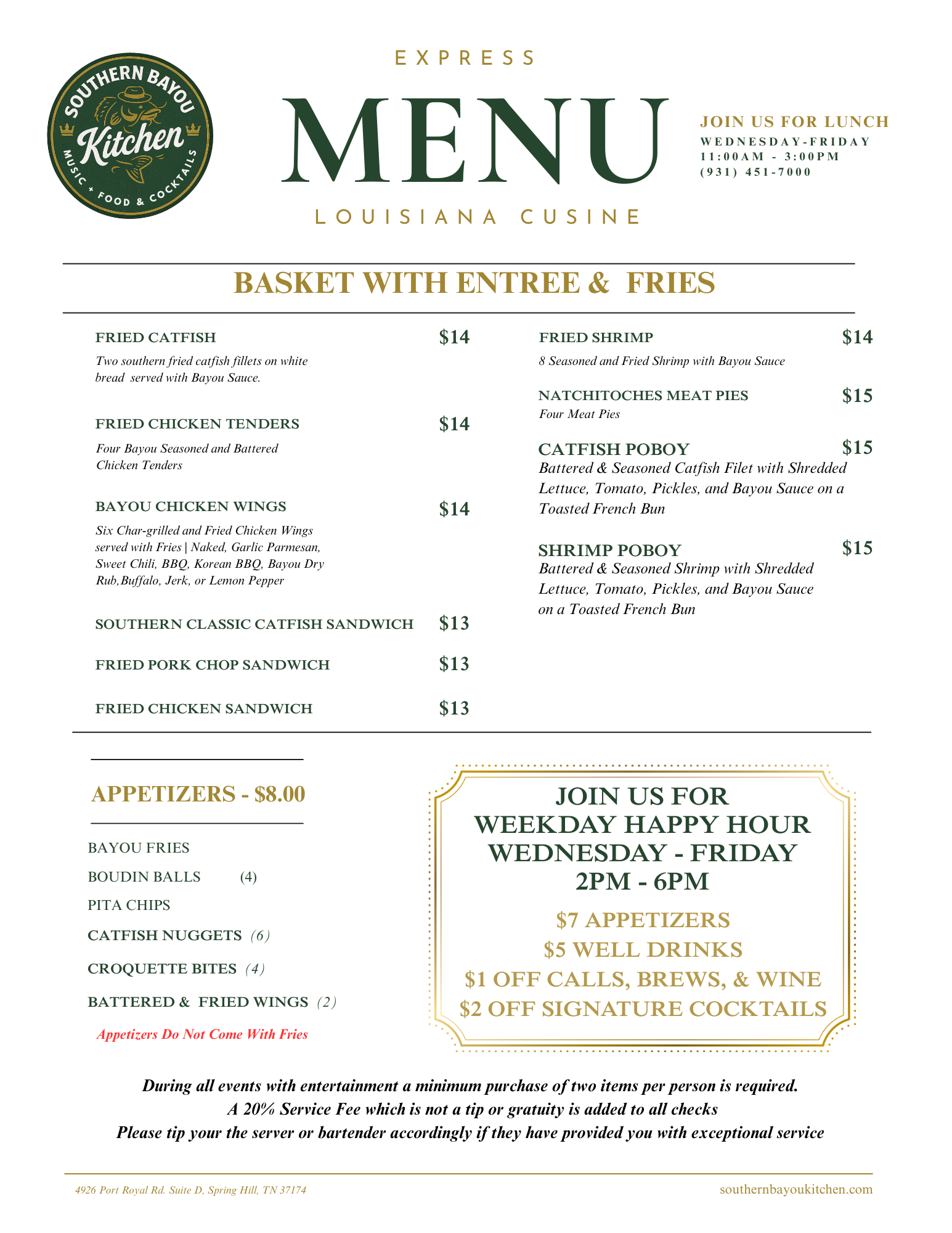 Folder: SOUTHERN BAYOU EXPRESS & CATERING